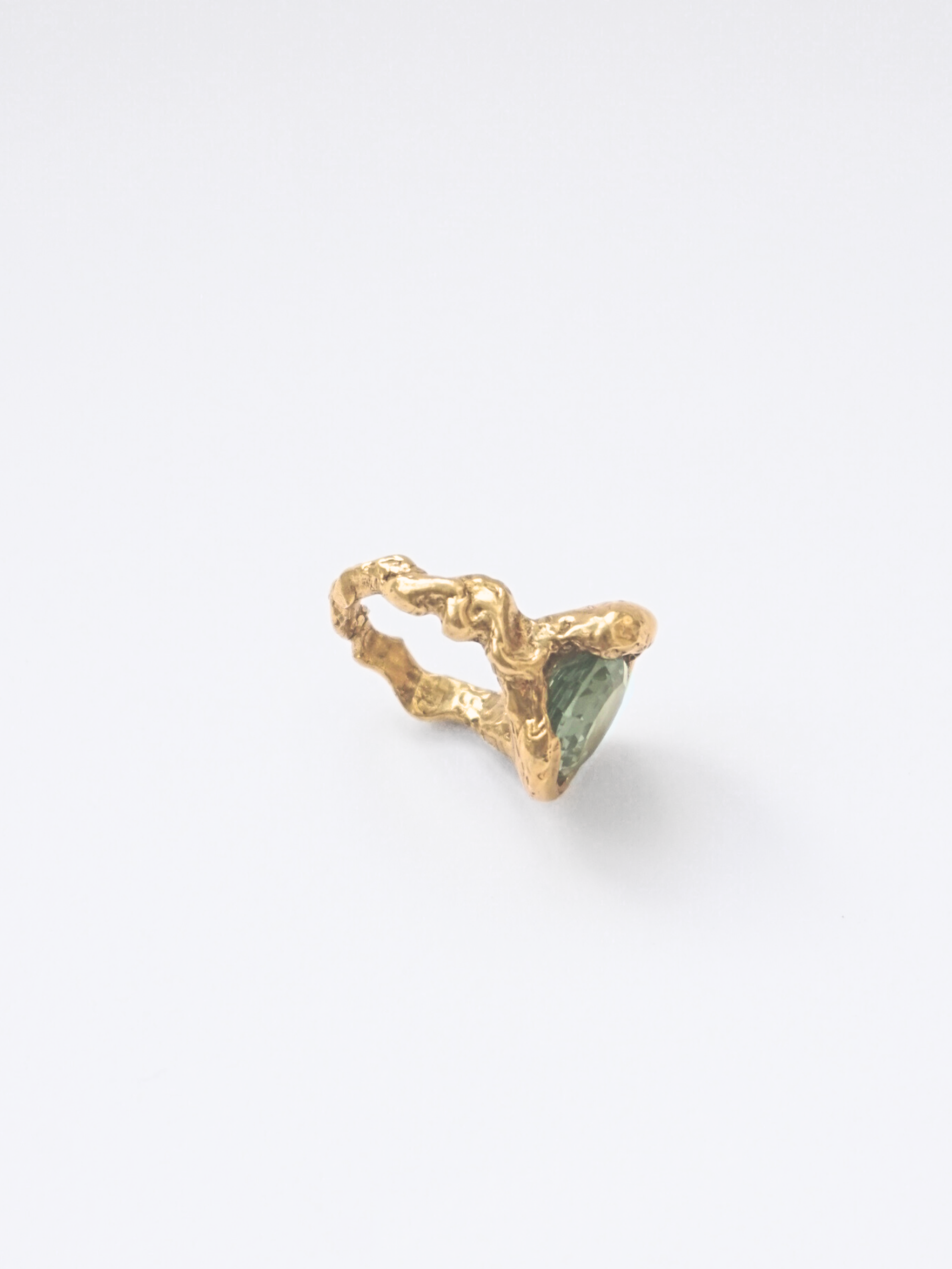 Ring made of 925 recycled silve plated in 18k gold with a natural stone set within the metal. Its organic texture and the gesture of the metal surrounding the stone. Handmade in Barcelona following the legacy of traditional jewelry, reinterpreted from a contemporary perspective.