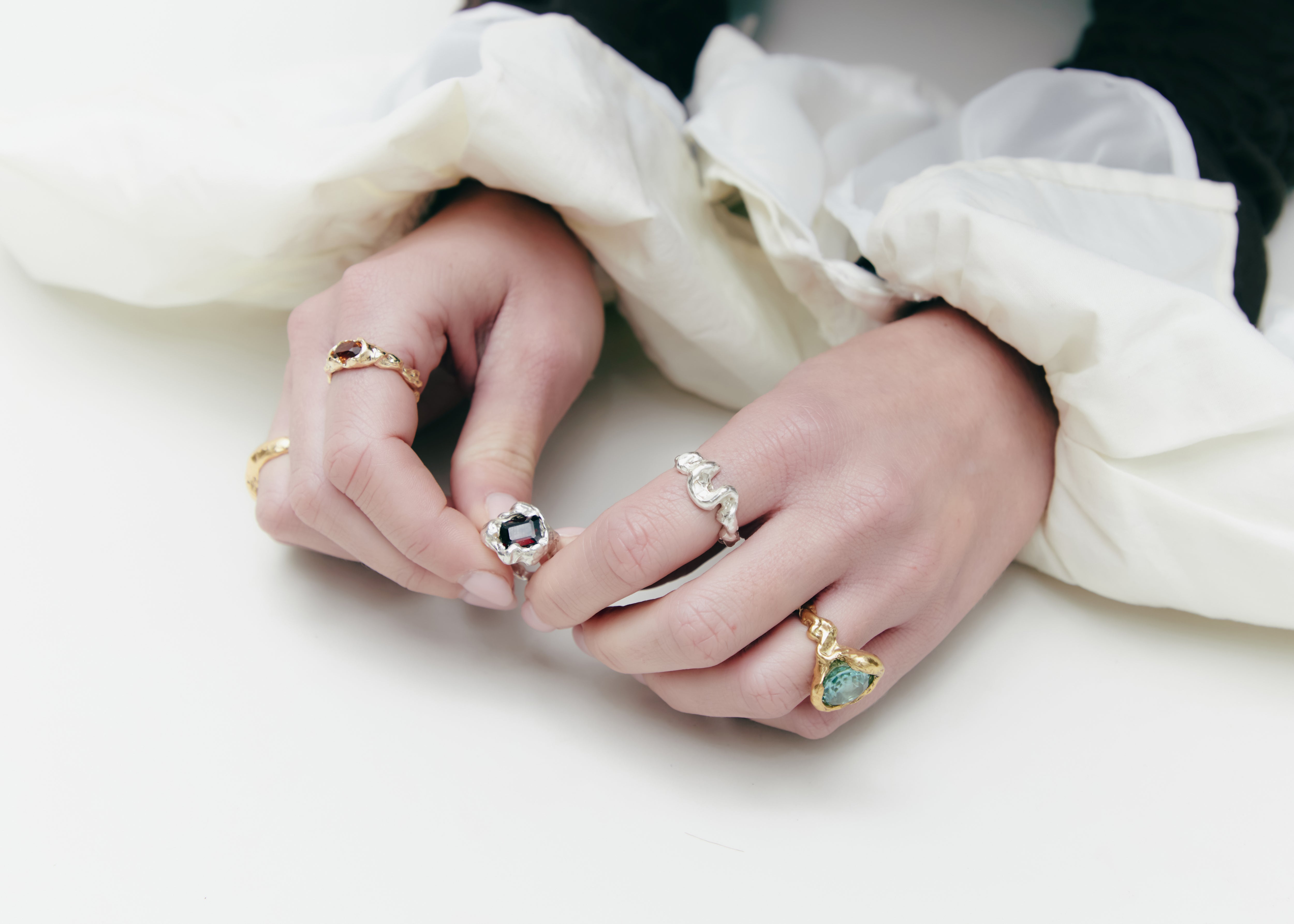 Its form is composed of small elevations that flow along the piece, evoking the hand-shaped gesture that gives it life. Handmade in Barcelona, following the legacy of traditional jewelry, reinterpreted from a contemporary perspective.