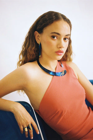 Inspiriert von der Tiefsee ist diese Kollektion eine Neuerfindung der Grundlagen, bei der ätherische Formen die Designs charakterisieren. Eine Kollektion, die an klaren Himmel und tiefe Ozeane erinnert und darauf abzielt, den Alltag und die seltenen Gelegenheiten aufzuwerten. Handgefertigt aus hochglanzpoliertem Titan für Hochglanz, erinnert Sie das glänzende Blau an einen ewigen Sommer. Wie die Gezeiten strahlen die Schmuckstücke dieser Kollektion Bewegung und Frische aus.